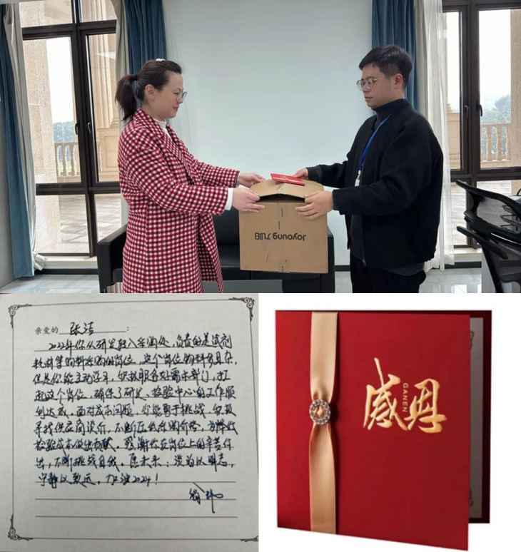 海陵衷心對他們的付出表示感謝,并為其準備了感恩卡和禮物,直屬領(lǐng)導(dǎo)“驚喜出現(xiàn)”,將手寫感謝卡和禮物交給他們!