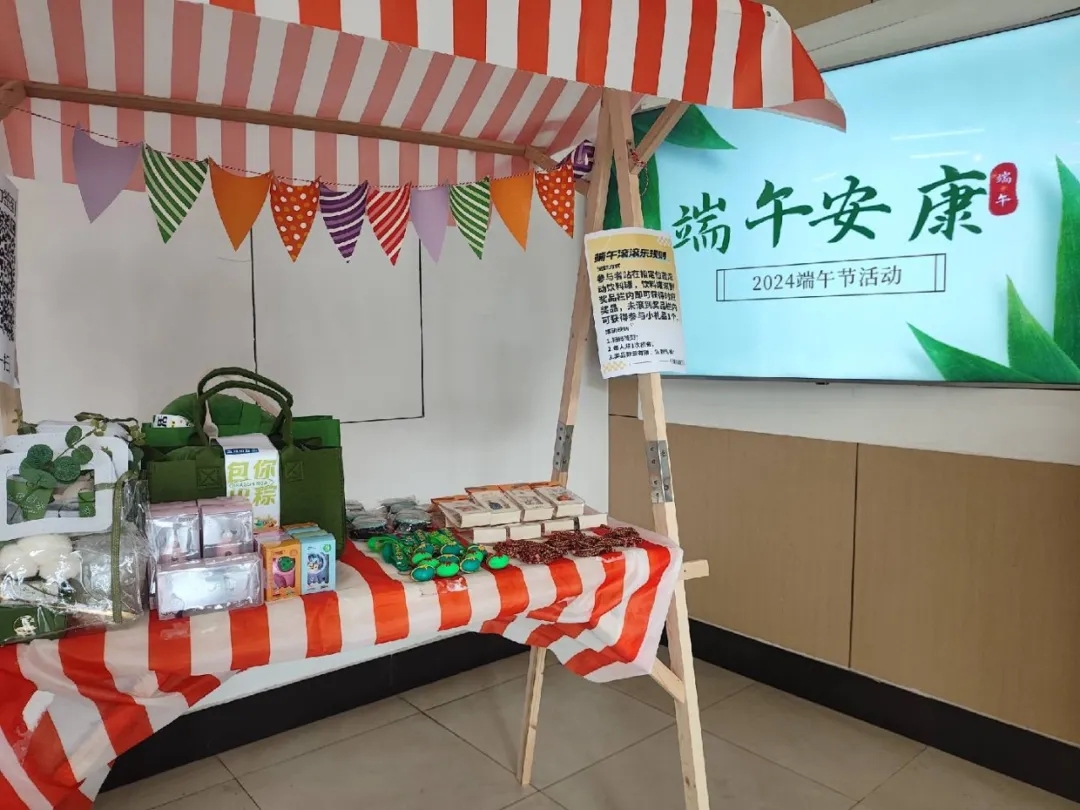 “端午滾滾樂”:食堂入口處,鋪上了一塊兩米長的地毯,裝點(diǎn)著可愛的小粽子,大小相同的空白窗格像階梯一樣列隊(duì)在地毯中央。員工們紛紛加入游戲,站在指定位置,將飲料罐滾動至相應(yīng)窗格中,獲得驚喜獎品;未能獲獎的員工,也都領(lǐng)取到端午節(jié)五色繩。海陵工會為員工們準(zhǔn)備了端午大禮包、補(bǔ)水儀、端午掛飾、零錢包等眾多獎品,活動現(xiàn)場熱鬧非凡,員工們積極參與游戲,共祝端午安康。