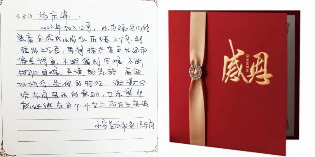感謝卡:2022年加入公司,以肉眼可見(jiàn)的速度在成長(zhǎng),從崗位歷練2個(gè)月,到接崗工藝員,再到接手變更發(fā)起和偏差調(diào)查,不斷遇到困難,不斷戰(zhàn)勝困難。嚴(yán)謹(jǐn)?shù)乃悸罚咝У貓?zhí)行,是你的特征,謝謝你給車(chē)間帶來(lái)的幫助,也希望你能繼續(xù)在這個(gè)平臺(tái)上成長(zhǎng)和突破。