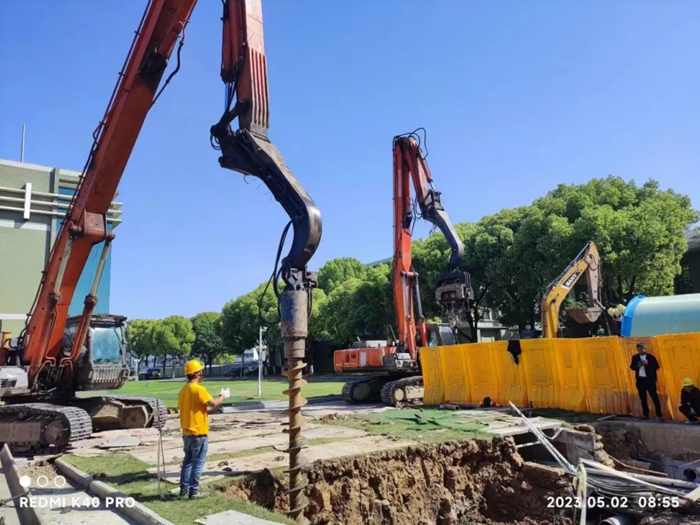 2023年的2月10日,一隊穿著嘉凡市政的施工人員來到了海陵檢測中心,隨著設(shè)備的轟鳴聲準(zhǔn)備作業(yè)施工。然而此地東側(cè)臨河,其水泥平臺為懸挑結(jié)構(gòu),若是直接開挖,可能會有平臺結(jié)構(gòu)安全風(fēng)險!