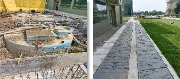 2022年6月,薛永峰開始將自己設(shè)想的畫面細(xì)化落實,項目正式立項。前期的調(diào)研設(shè)計工作是項目順利落地的保障。海陵草坪之下,是二十年來“勤懇”運行的暗管、電纜和壓力管道,盡管有圖紙可供參考,但畢竟年份久遠(yuǎn),實際的情況只有現(xiàn)場勘察才能確認(rèn)。而施工方案的設(shè)計既要滿足海陵同步使用同步改造的需求,又需要便于后期對草品美觀度的恢復(fù),使之符合廠區(qū)整體的環(huán)境風(fēng)格。薛永峰關(guān)注著設(shè)計圖的每一個細(xì)節(jié),并對設(shè)計單位提出改進(jìn)意見。項目進(jìn)度穩(wěn)步推進(jìn)。