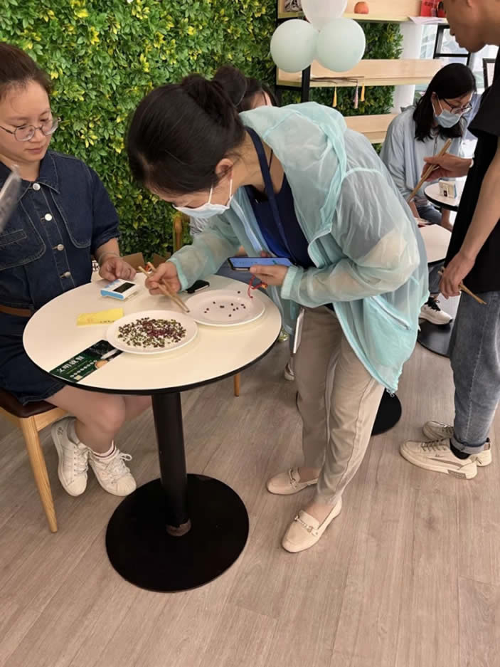 紅豆生南國,春來發(fā)幾枝。這蜜豆不是普通的蜜豆,是王維詩里面的蜜豆。夾蜜豆可是對手穩(wěn)有很高的要求的,打飯愛“手抖”的員工可要注意啦,手一抖將前功盡棄。夾蜜豆要領:手穩(wěn)、氣平、心態(tài)好。大家還記得當時自己夾了幾顆蜜豆嗎?而夾到最多蜜豆獲得蜜豆王稱號的就是收獲滿滿35枚小蜜豆的楊新悅。
