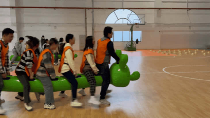 隨著響亮的口哨聲,活動(dòng)正式開(kāi)始!第一個(gè)項(xiàng)目是“毛毛蟲(chóng)大比拼”,四支隊(duì)伍都領(lǐng)到了一只毛毛蟲(chóng)作為團(tuán)隊(duì)“坐騎”,看似簡(jiǎn)單,實(shí)則不易。練習(xí)以后,大家都看出了項(xiàng)目的關(guān)鍵:考驗(yàn)團(tuán)隊(duì)協(xié)作力?!白笥易蟆薄耙欢弧备麝?duì)各自喊著口號(hào)步伐一致地奔赴終點(diǎn)!