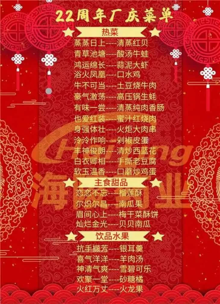 二十二年!是一道歷史印跡的長度!是揚帆逐夢,轉(zhuǎn)型發(fā)展的高度!海陵食堂準(zhǔn)備了豐盛的廠慶自助餐活動,邀請大家一起共享這份喜悅,見證奮進(jìn)者的光芒~
